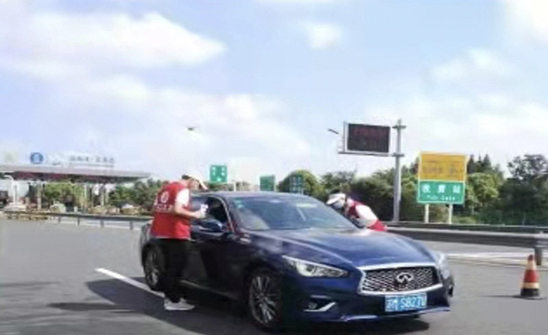 G2京沪高速靖江南出口,苏东彦同学忙着检查入城车辆的“两码”,引导司机配合防疫查验。“您好,请出示您的健康码和行程码。”“您好,麻烦您下车接受登记。”同样的话他不知道重复了多少次,“两码”也不知道查验了多少人,自始至终都按照规范严格检查过后才放行。