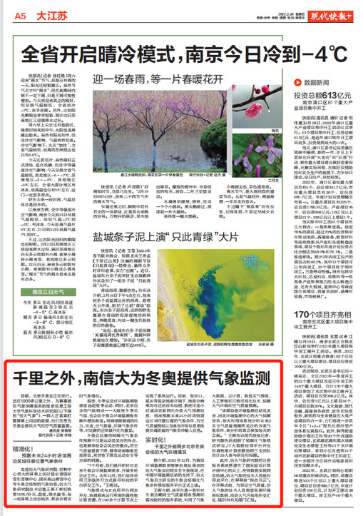 目前,北京冬奥会正在举行。远在1000多公里之外,为赛事提供气象保障服务的南京信息工程大学气象科学技术研究院(以下简称“信大气象”),一群人正紧紧盯着屏幕上闪动的数据,他们负责为冬奥会提供大气和空气质量监测。