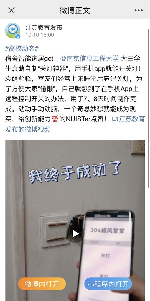 下一篇:火了!南信大男生自制“关灯神器”上热搜