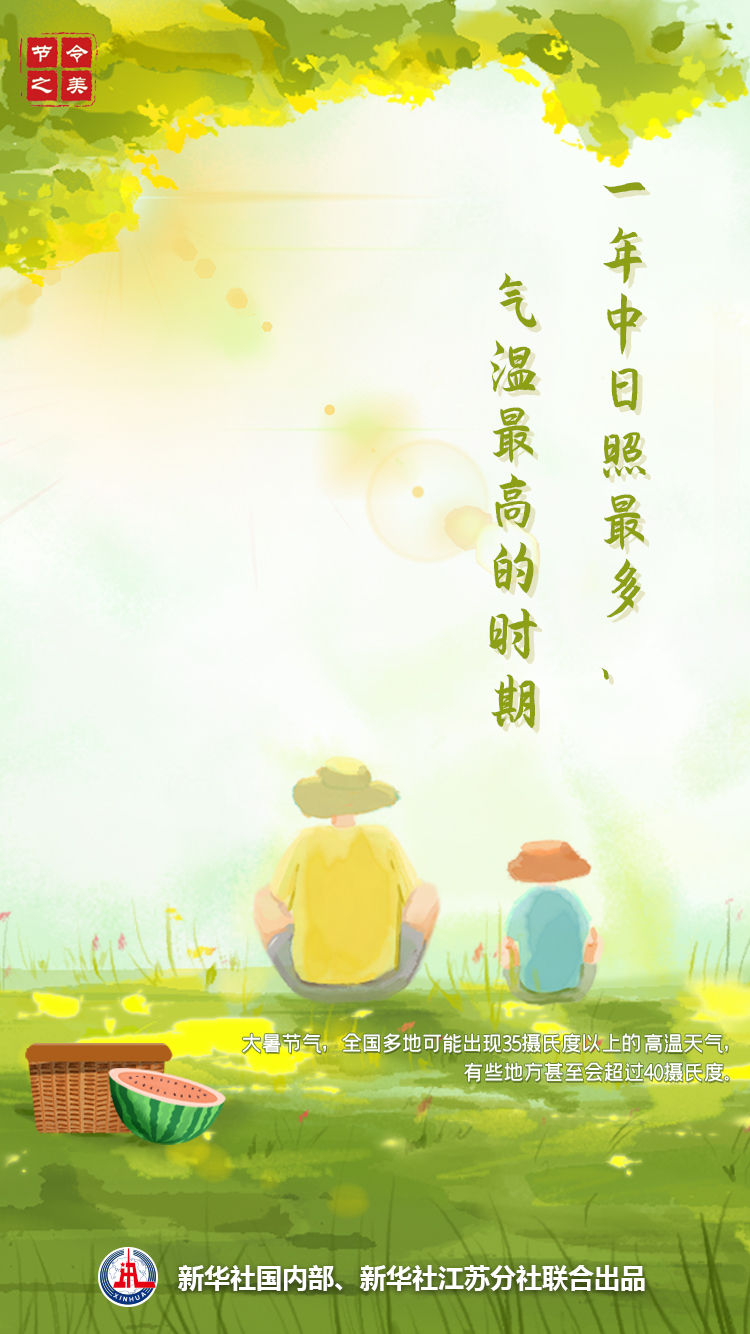 “大暑处于三伏天的中伏前后,是一年中日照最多、气温最高的时期,全国多地可能出现35摄氏度以上的高温天气,有些地方甚至会超过40摄氏度。”江晓东解释说,受副热带高压影响,我国东部晴天多,日照强,地面积累的热量达到最大,气温持续上升。此外,受夏季风影响,我国夏季空气湿度大,吸收热量多,人的体感温度更高。大暑时节我国北方进入雨季,黄淮、华北、东北南部等地进入主汛期,暴雨天气多发。