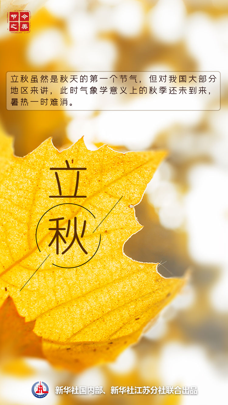 南京信息工程大学应用气象学院副教授江晓东说,立秋虽然是秋天的第一个节气,但对我国大部分地区来讲,此时气象学意义上的秋季还未到来。立秋节气通常在“三伏天”里的中伏期间到来,是仅次于小暑、大暑的第三热节气。