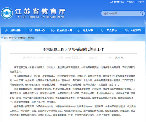 南京信息工程大学坚持以美育人、以文化人,通过强化美育课程建设、创新美育教育实践、挖掘多层次美育资源,不断加强新时代美育工作。