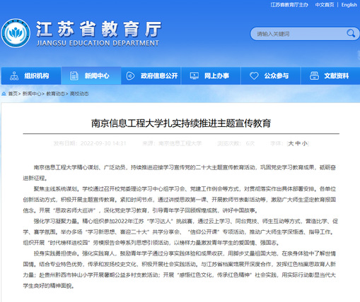 南京信息工程大学精心谋划、广泛动员,持续推进迎接学习宣传党的二十大主题宣传教育活动,巩固党史学习教育成果,砥砺奋进新征程。