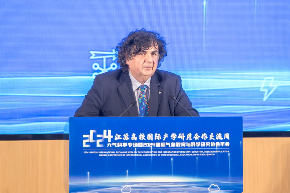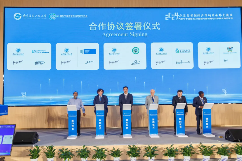 近日,2024江苏高校国际产学研用合作交流周大气科学专场暨国际气象教育与科学研究协会(IAMES)年会开幕式在中国气象谷举行。来自18个国家(地区)的30余名海外知名专家学者参会。南京信息工程大学与5所国外高校签署合作协议,中欧医学人工智能研究院揭牌成立。