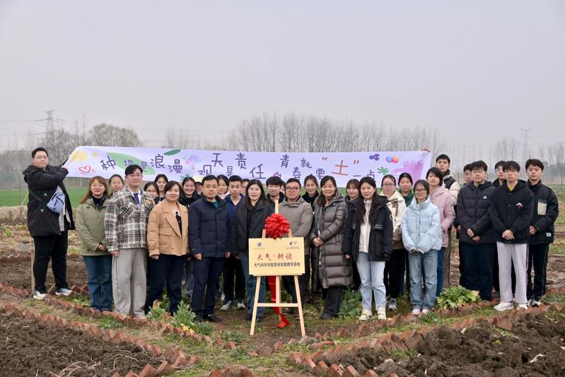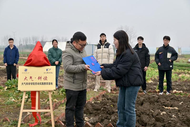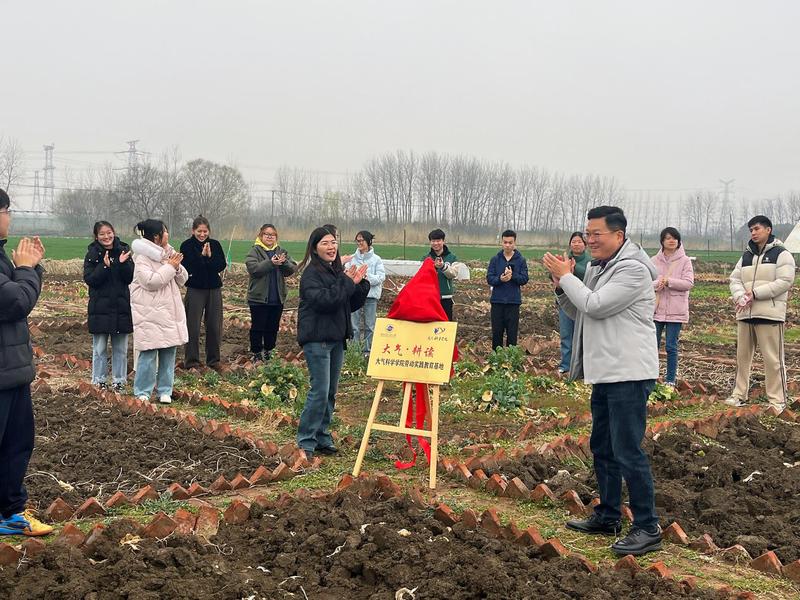 3月5日惊蛰,南京信息工程大学大气科学学院联合南京市盘城街道打造“大气·耕读”劳动实践课堂,将思政课堂搬到田间地头,通过“耕读实践+学科赋能+校地协同”的“三维育人”模式,探索新时代劳动教育与思政育人深度融合。30余名师生与街道干部、社区代表共同参与活动,走进松雀与桐工作室及农艺基地,现场揭牌“大气·耕读劳动实践教育基地”。