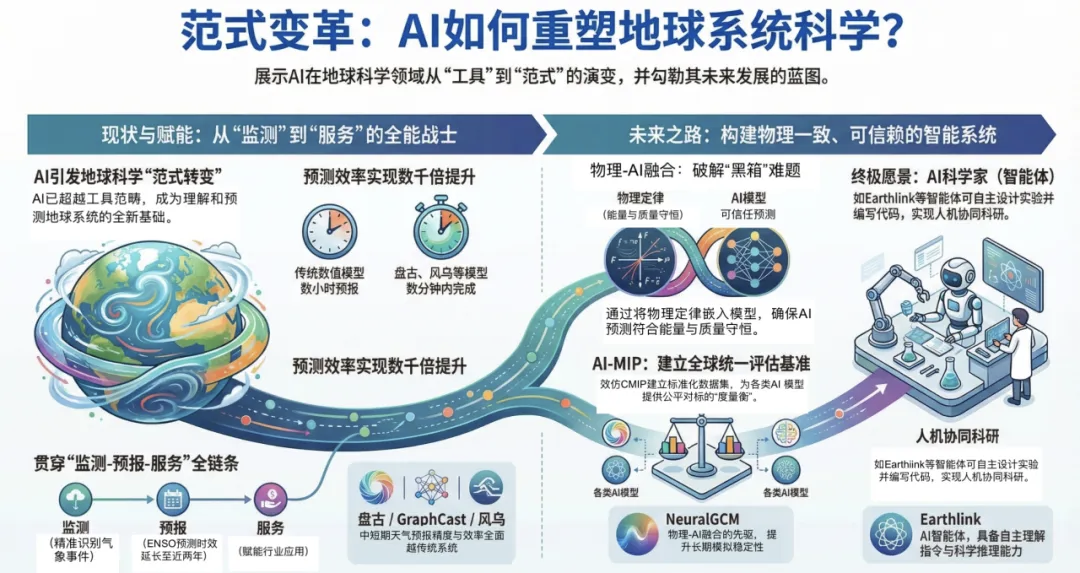 近日,由南京信息工程大学罗京佳教授领衔,联合来自中国、韩国、德国、美国和澳大利亚的45位跨学科专家在《国家科学评论》(National Science Review, NSR)发表了题为“AI for atmosphere-ocean sciences: advancements, challenges, and ways forward”的重磅综述 。文章系统性地梳理了人工智能(AI)在气象与海洋科学中的最新应用进展,深刻剖析了当前面临的挑战,并为构建下一代“物理一致、可信赖”的地球系统智能科学勾勒...